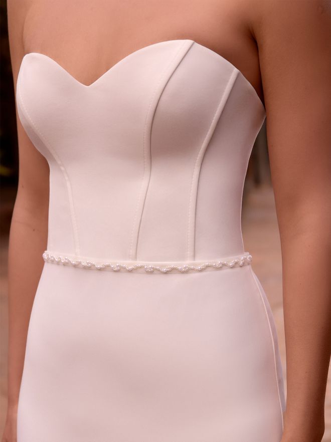 Modern, klar, selbstbewusst: Dieser Tüllgürtel mit Pailletten setzt feine Akzente an der Taille. Mit 275 cm Länge und einer Breite von 1,5 cm lässt er sich variabel hinten binden. Sorgfältige Details und dezente Pailletten verleihen dem Accessoire subtile Eleganz. Ideal als Taillengürtel für Brautkleider, für den zweiten Look am Abend oder als stilvolles Detail beim Standesamt.