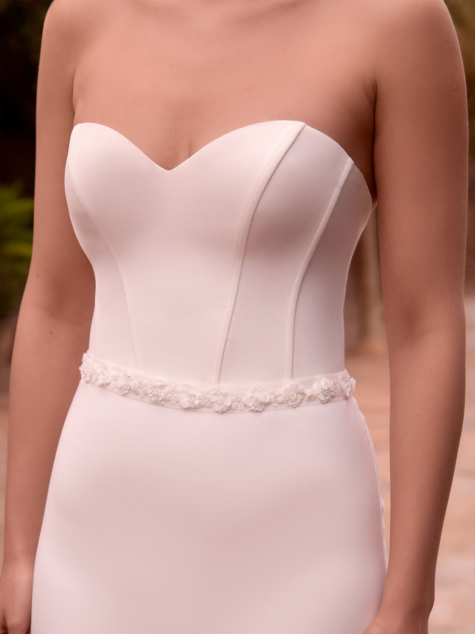 Modern, klar, selbstbewusst: Dieser Tüllgürtel mit 3D-floralem Spitzenbesatz setzt feine Akzente an der Taille. Mit 275 cm Länge und 2,5 cm Breite lässt er sich variabel hinten binden. Sorgfältige Details und plastische Spitze unterstreichen die handwerkliche Qualität. Ideal als Taillenakzent für Brautkleider, für den zweiten Look am Abend oder als elegantes Detail beim Standesamt.
