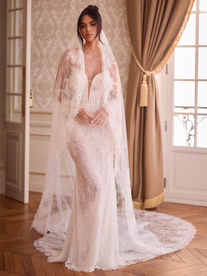 Feiner Brautschleier aus reinem, weichem Tüll mit sanftem Fall. Das einlagige Design und die zarte geschnittene Kante verleihen ihm eine moderne, klare Optik. Zarte runde Perlen schmücken den Schleier dezent und setzen edle Akzente. Mit einer Länge von 200 cm rundet er das Brautoutfit stilvoll ab.